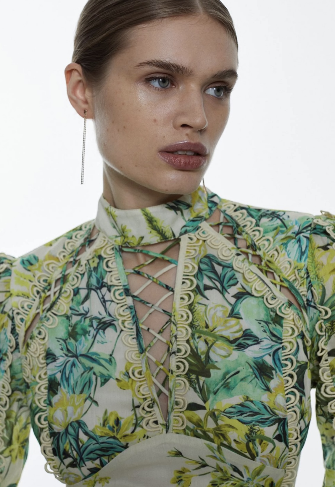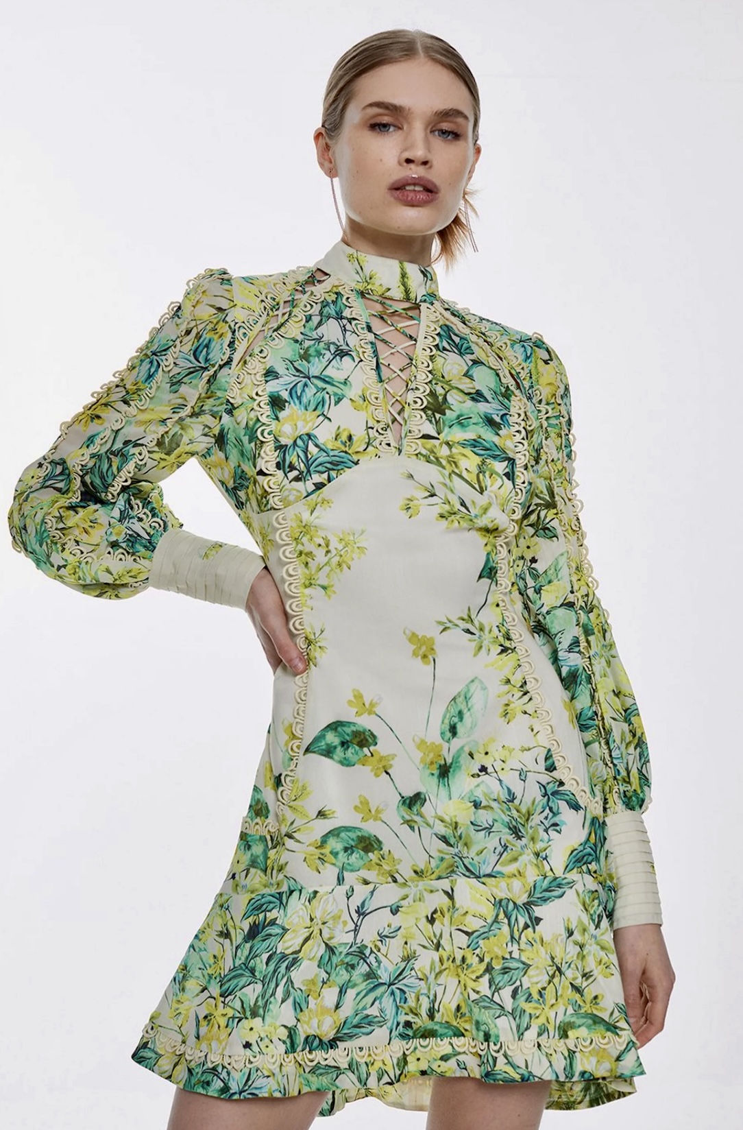 Karen Millen Trailing Floral Woven High Neck Mini Dress