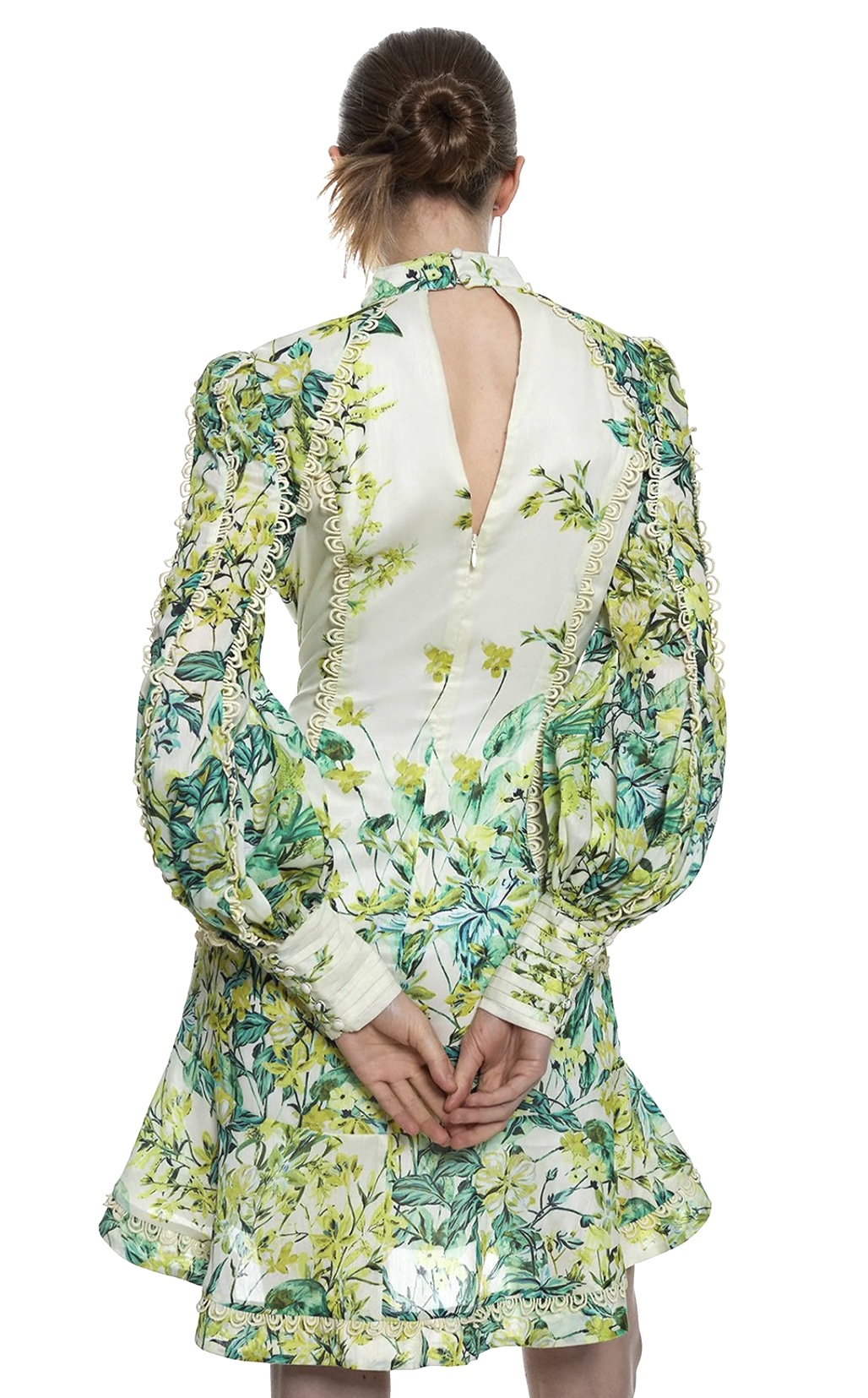 Karen Millen Trailing Floral Woven High Neck Mini Dress [Retail $438]
