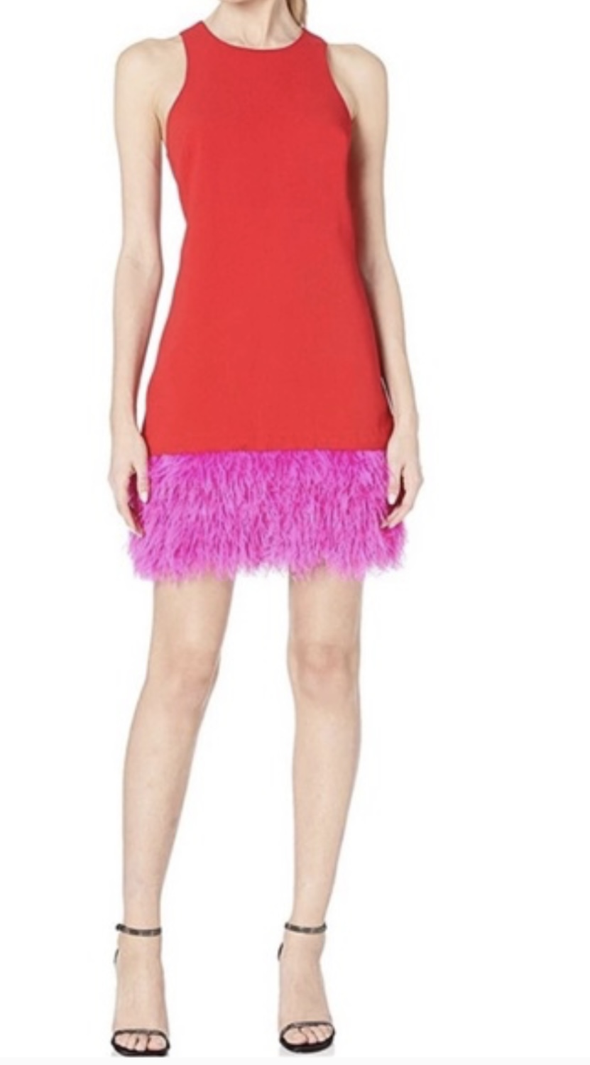 Trina Turk Berry Color Block Feather Trim Dress [Retail $398]