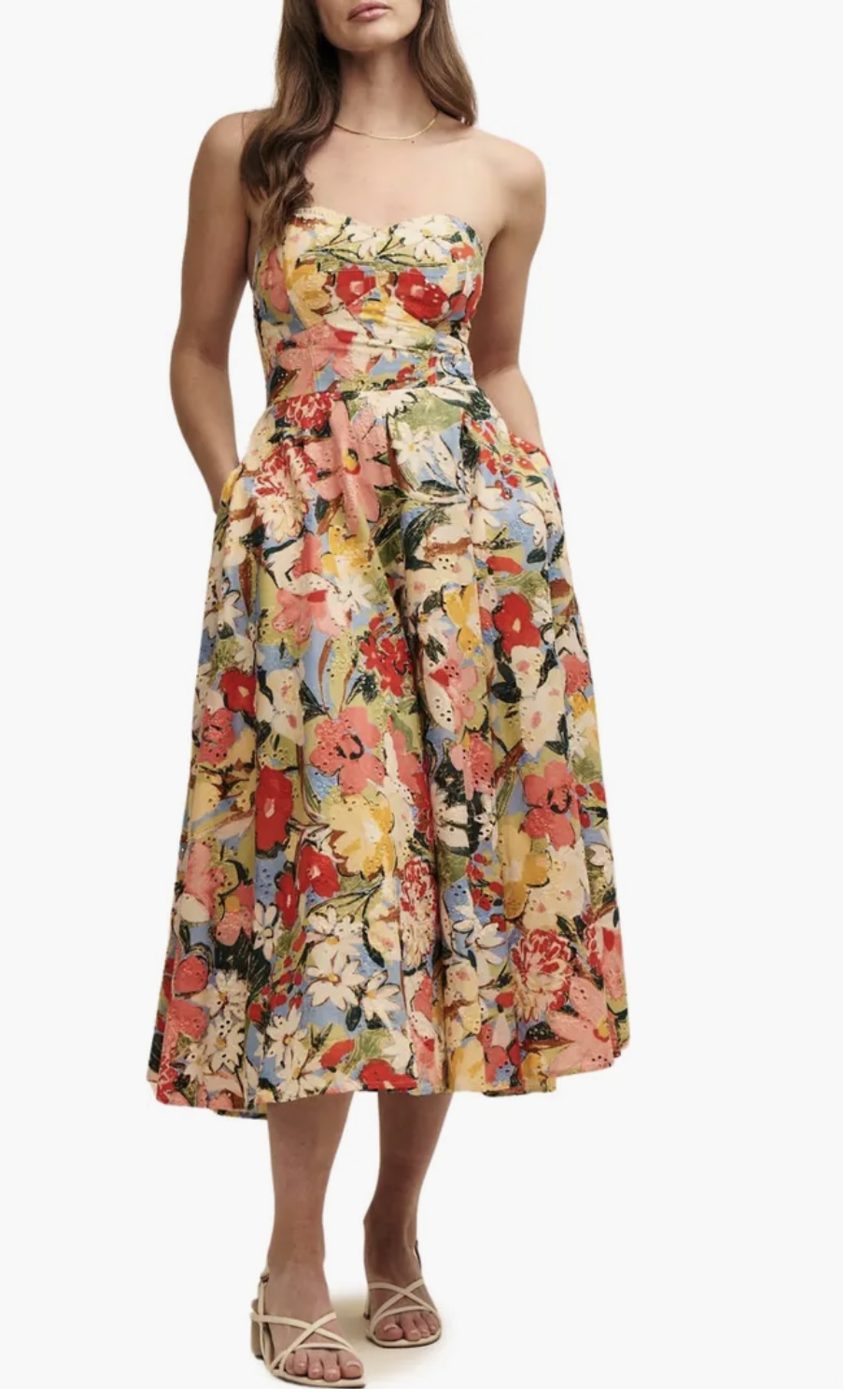 Aurora Floral Print Eyelet Strapless Organic Cotton Dress [Retail $204]