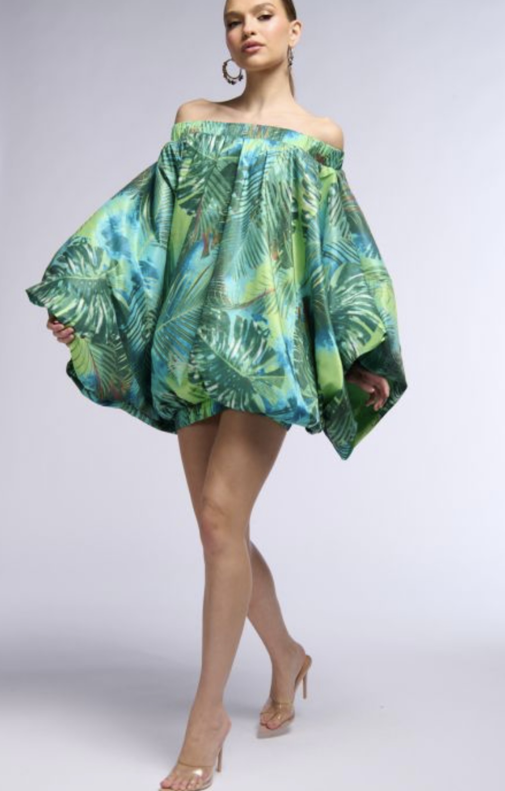 Green printed exaggerated sleeve dress