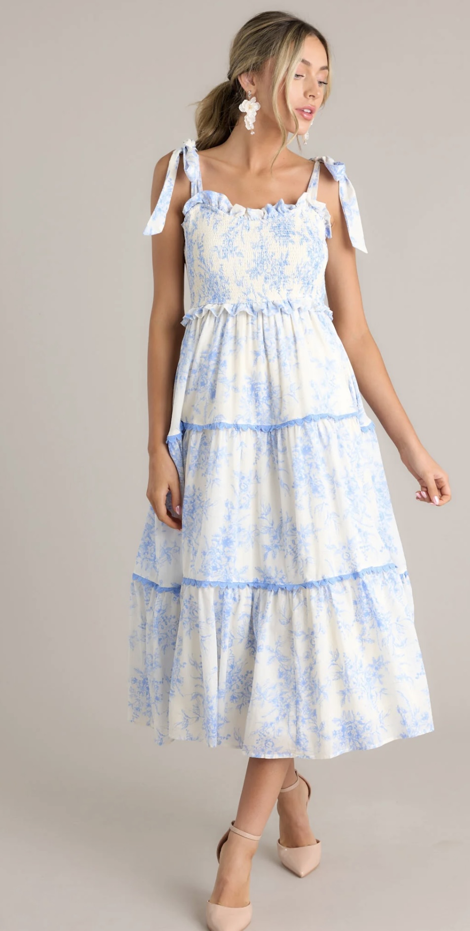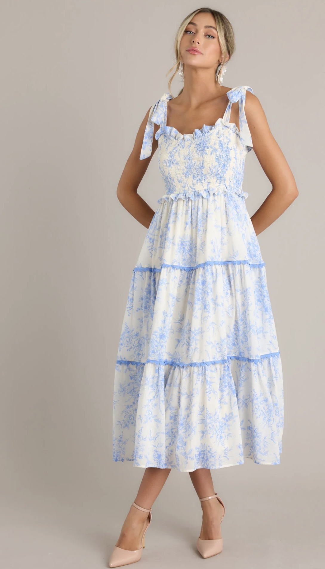 Meadow Serenade Blue Floral Toile Midi Dress [Retail $108]