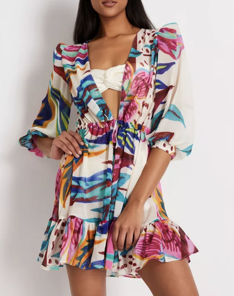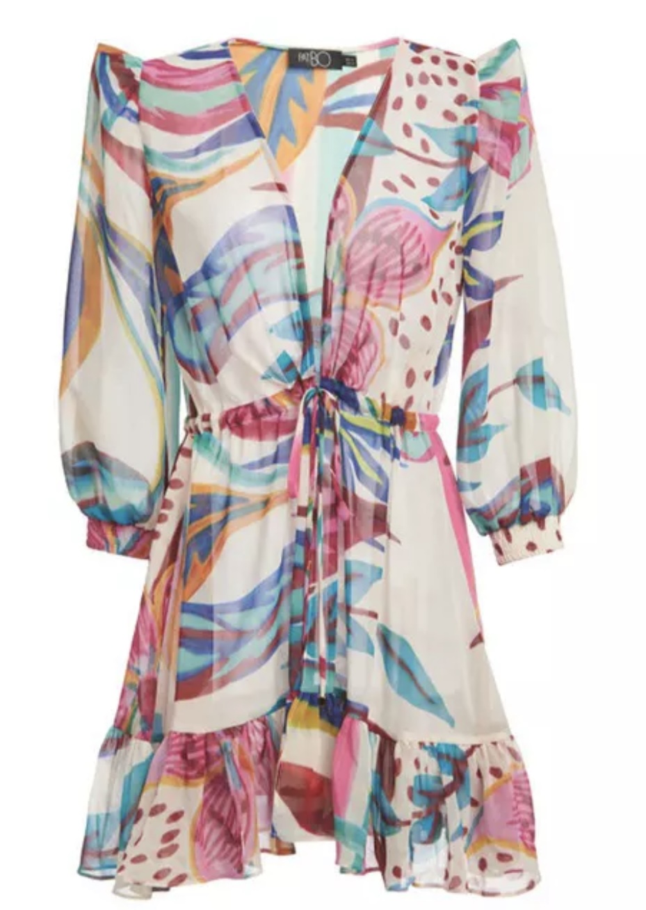 Trina Turk Berry Color Block Feather Trim Dress [Retail $398]