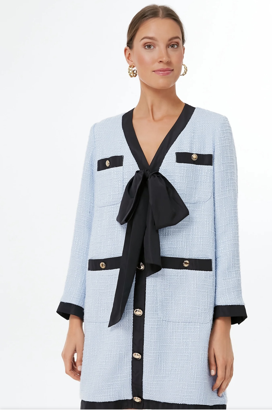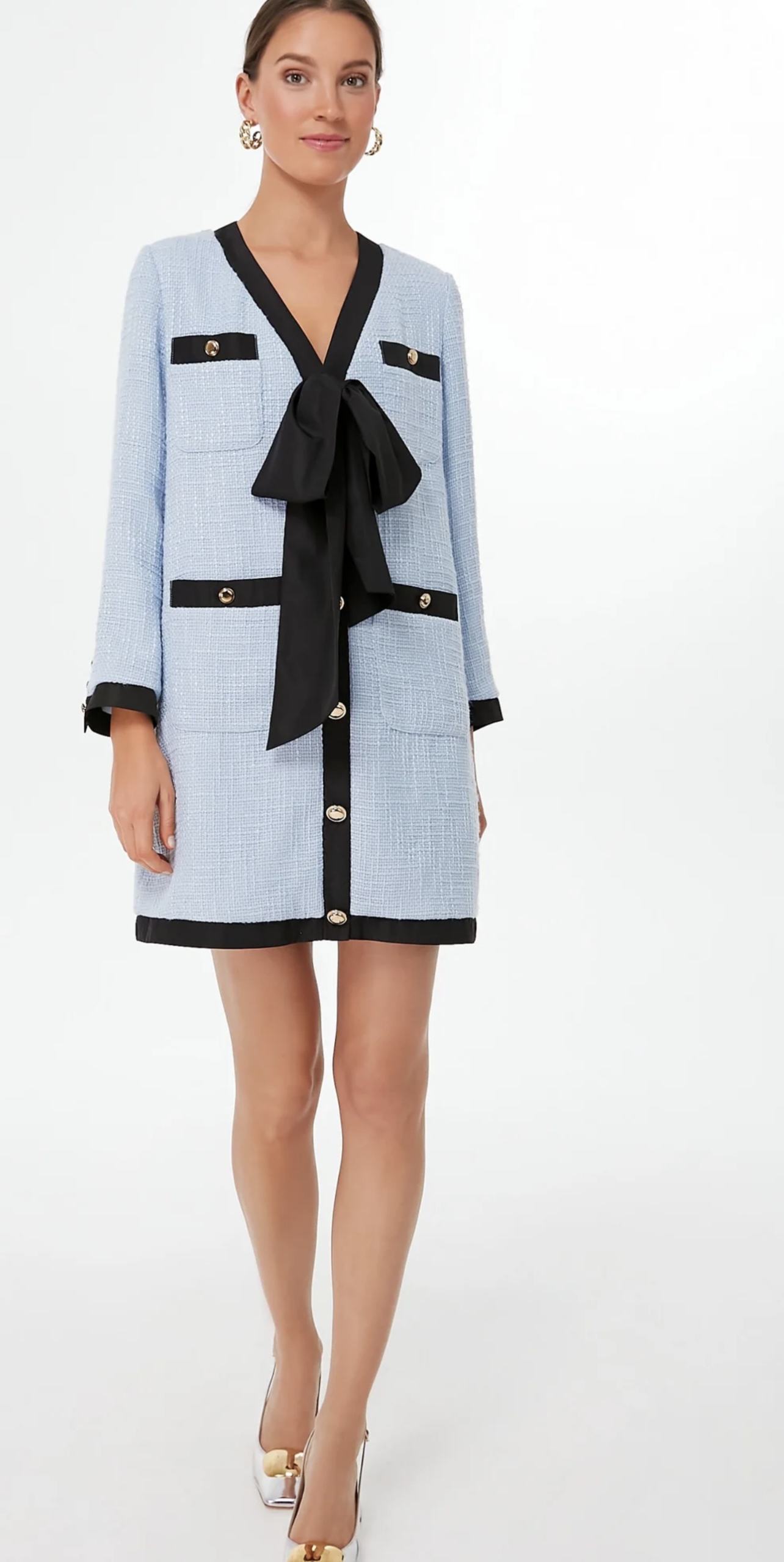 Pomander Place Light Blue Coco Tweed Bow Dress