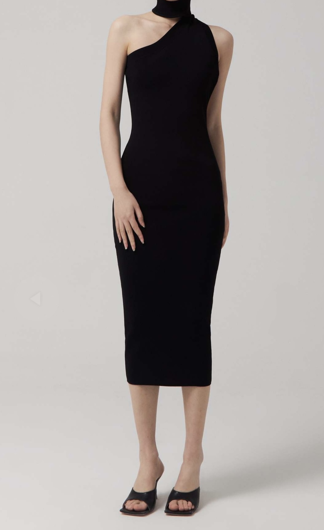 This stunning one-shoulder bodycon dress is crafted from premium stretch fabric for a perfect fit. The asymmetrical neckline and single broad strap create a sleek, modern silhouette that highlights your shoulder elegantly. This knee-length dress in classic black clings to your curves, offering both style and comfort. Ideal for formal events or a night out, its simplicity allows for versatile accessorizing to personalize your look. Embrace sophistication and comfort with this must-wear piece.