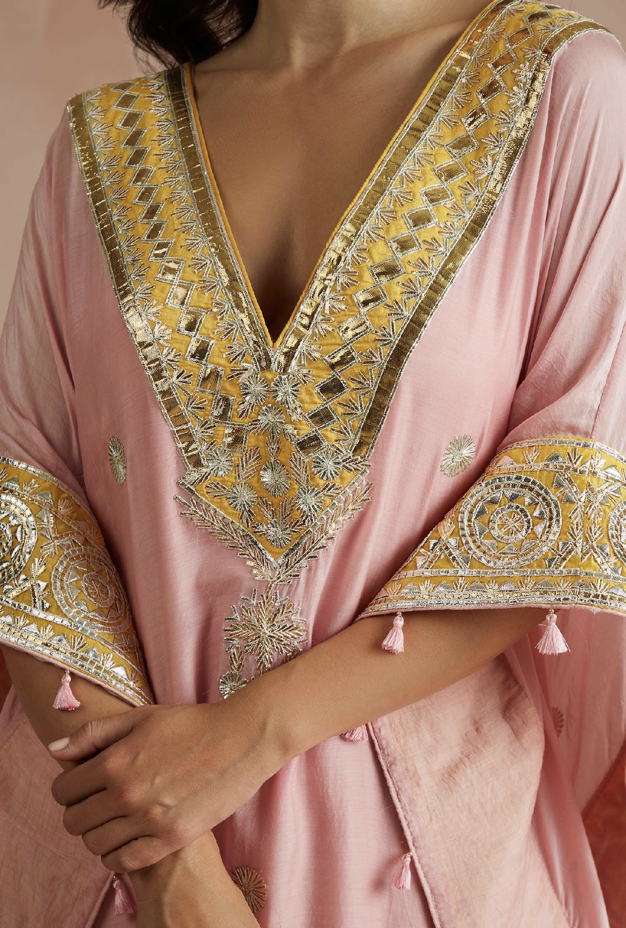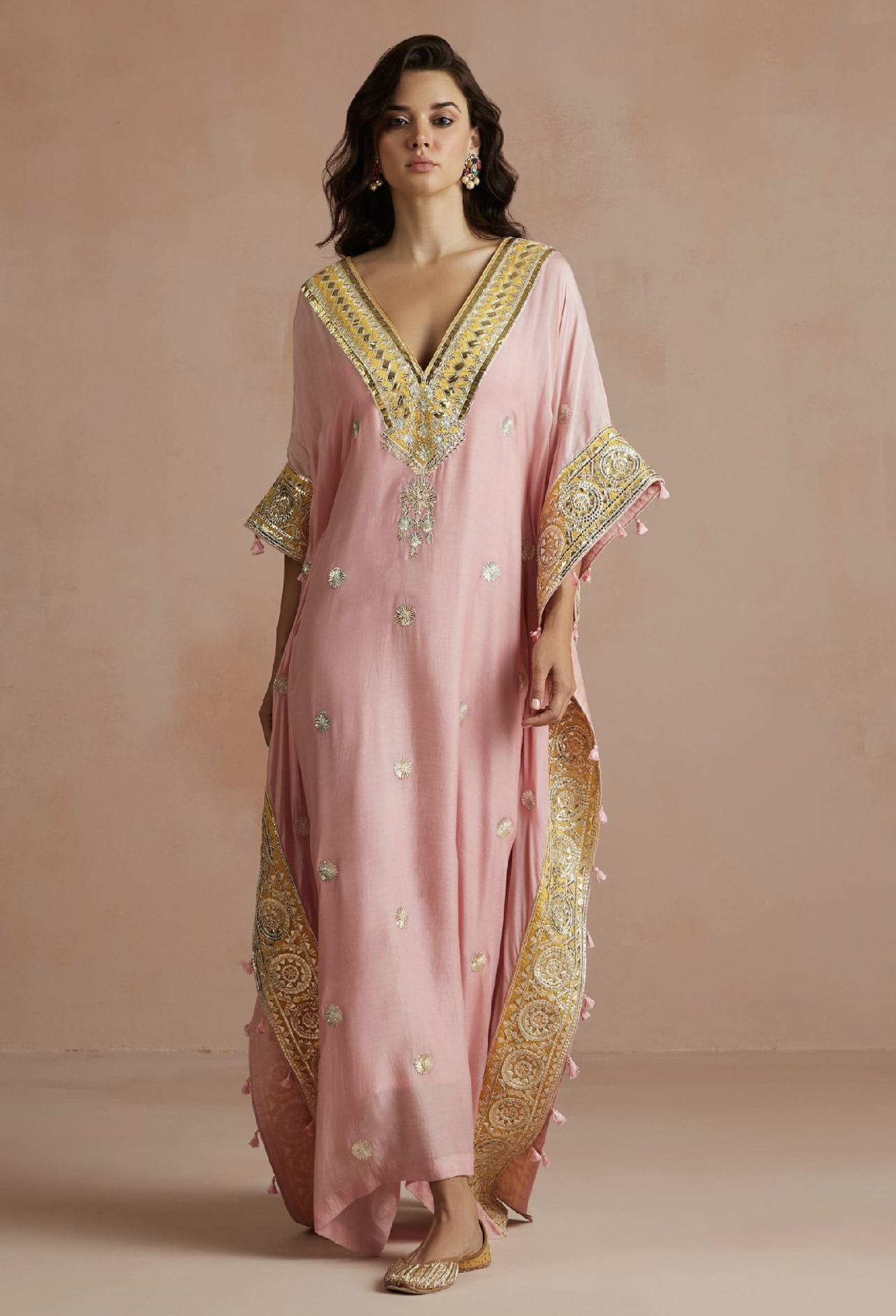 Sureena Chowdhri Blush Pink Pure Muslin Embellished Kaftan