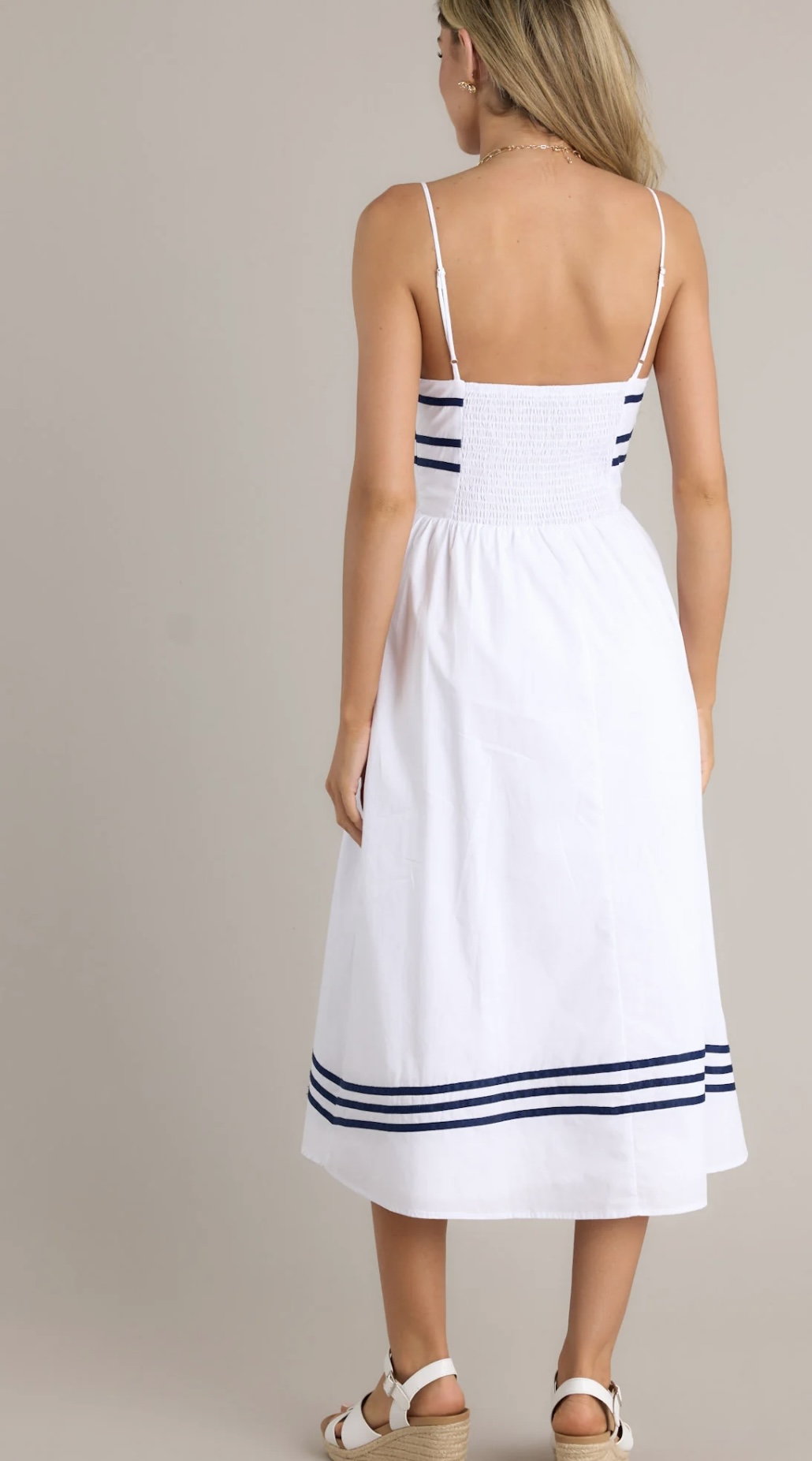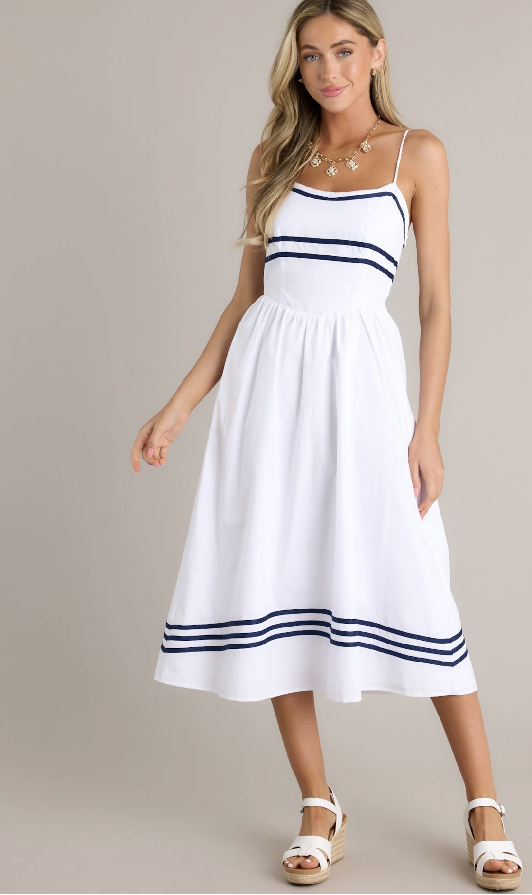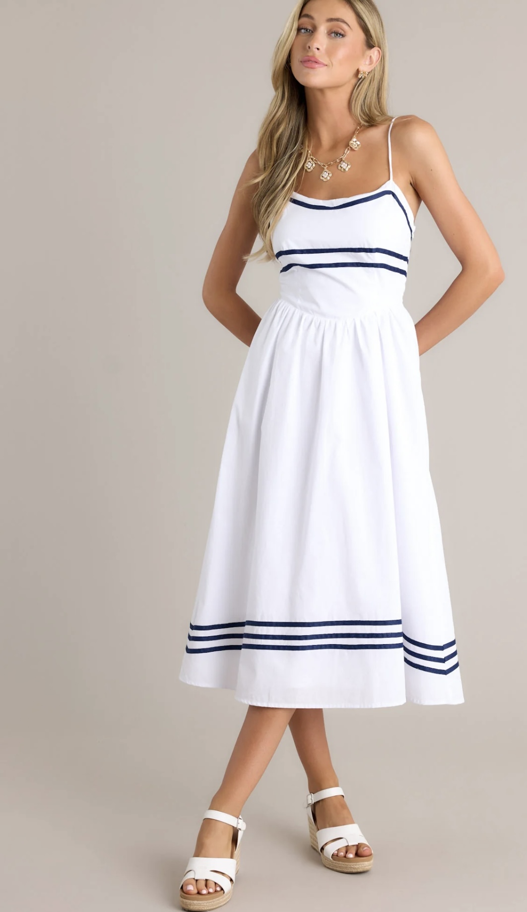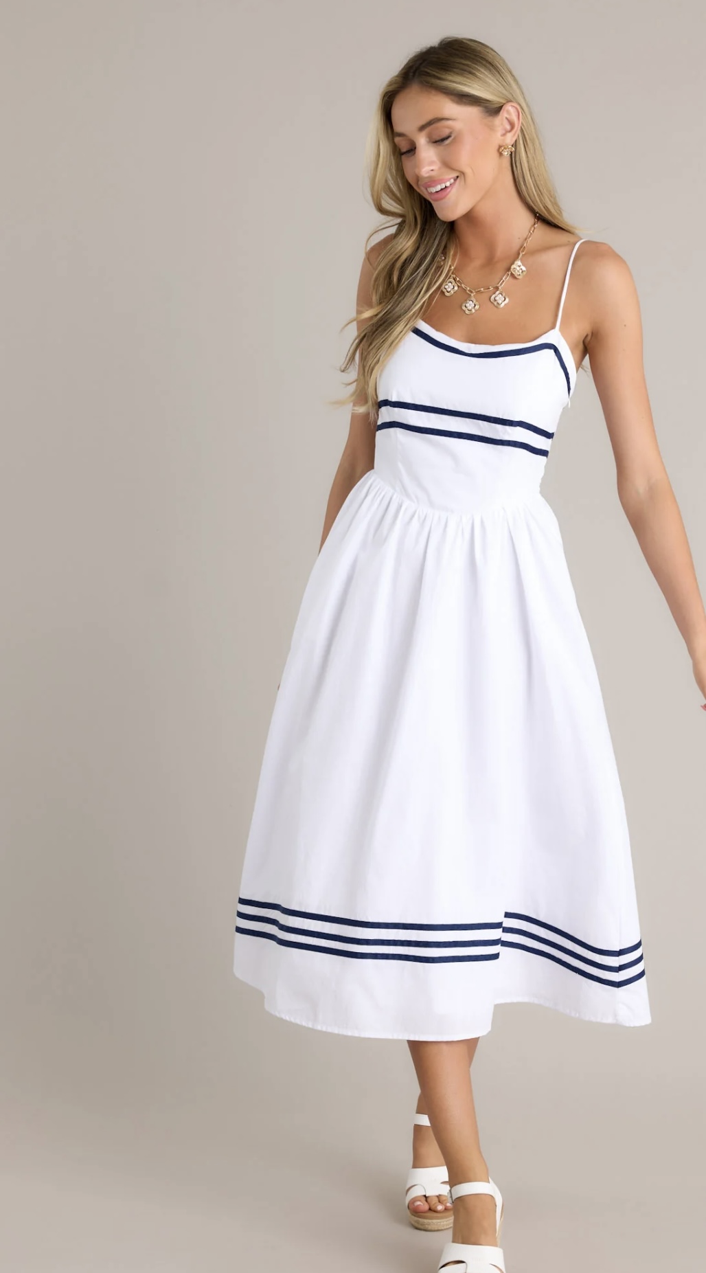SWEET MELODY 100% COTTON WHITE DROP WAIST MIDI DRESS
