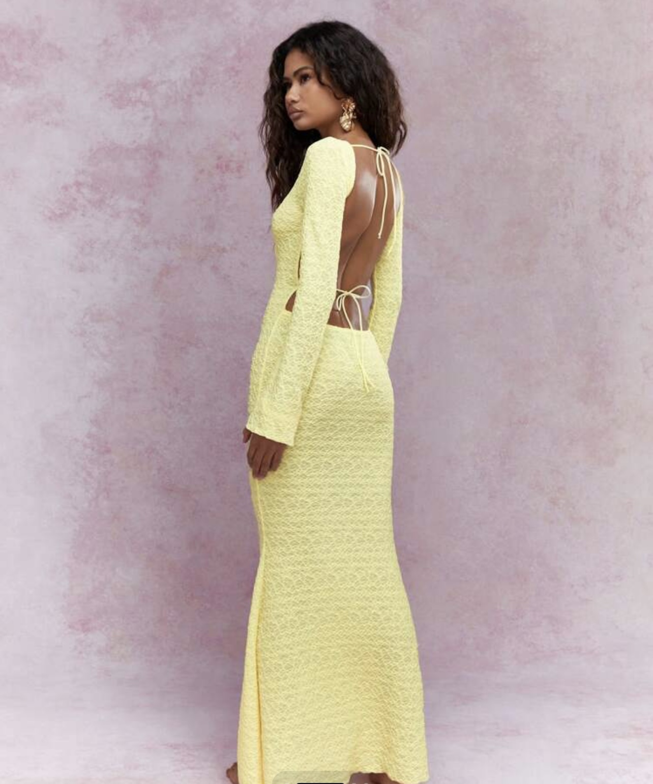 Textured Backless Long Sleeves Mermaid Hem Maxi Dress