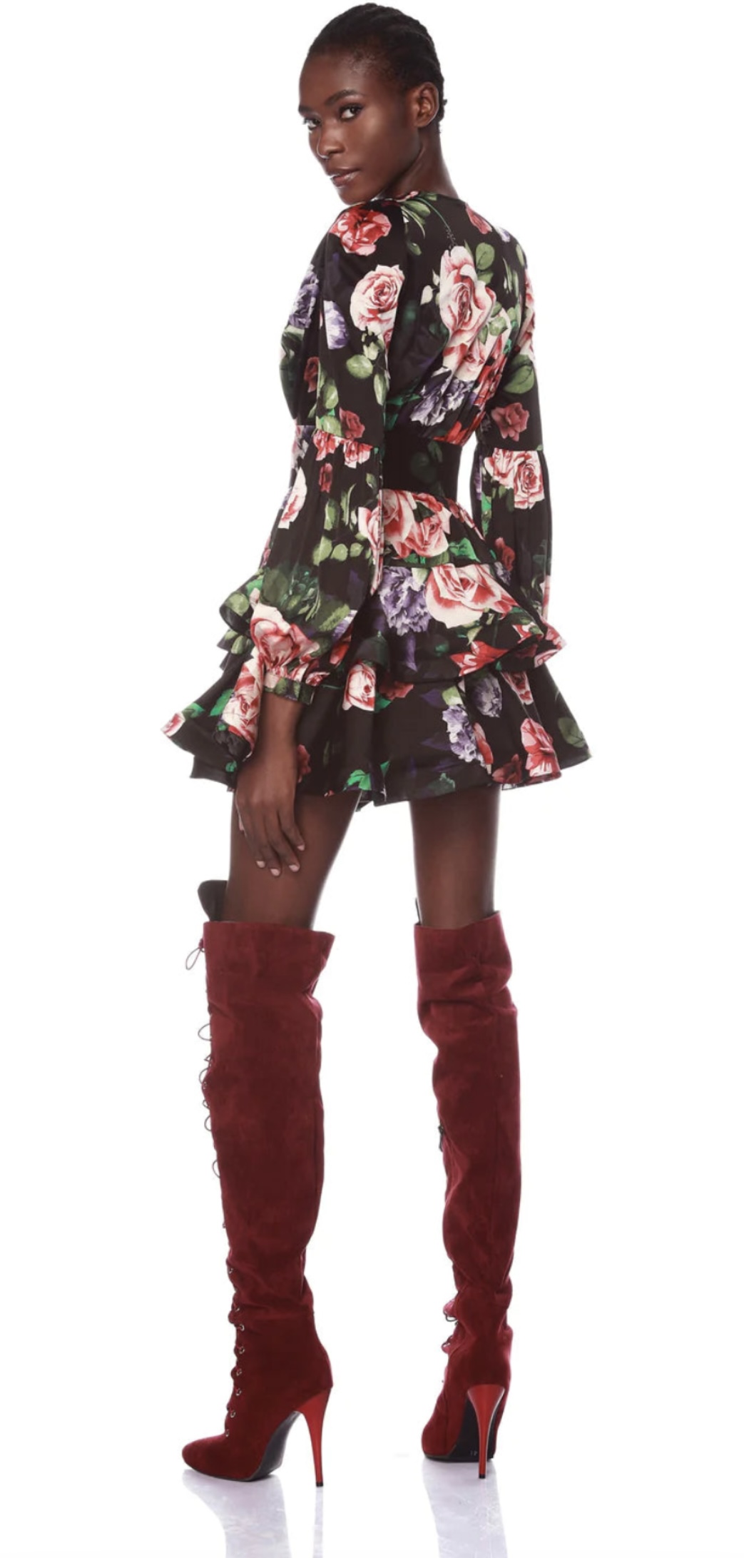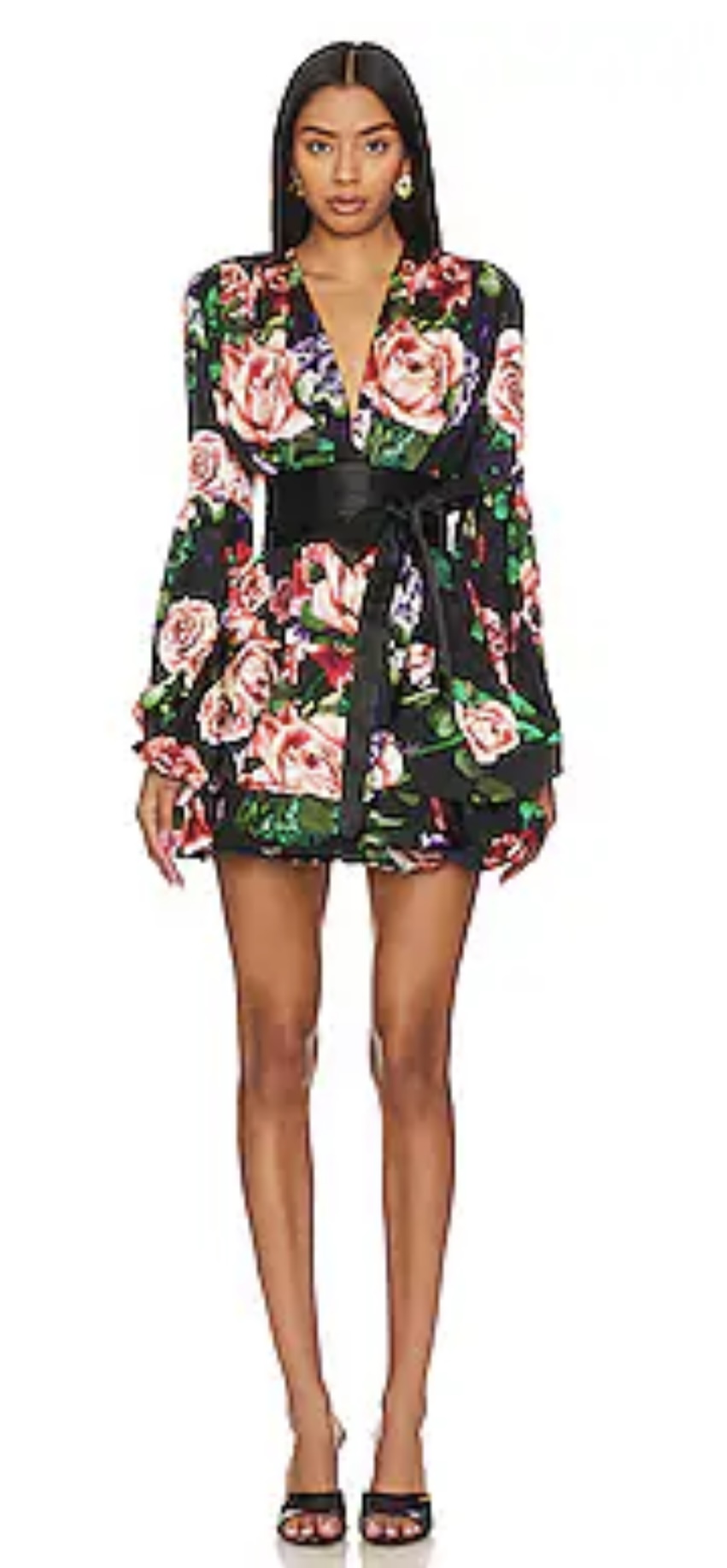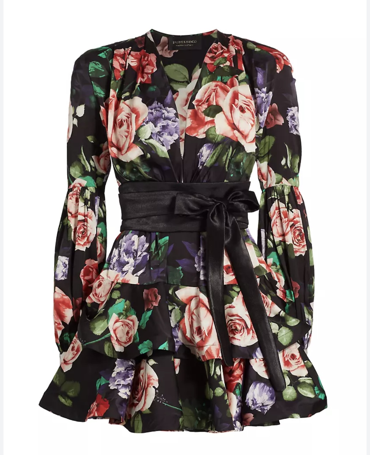 Bronx and Banco. Black floral Bedouin Rose mini dress