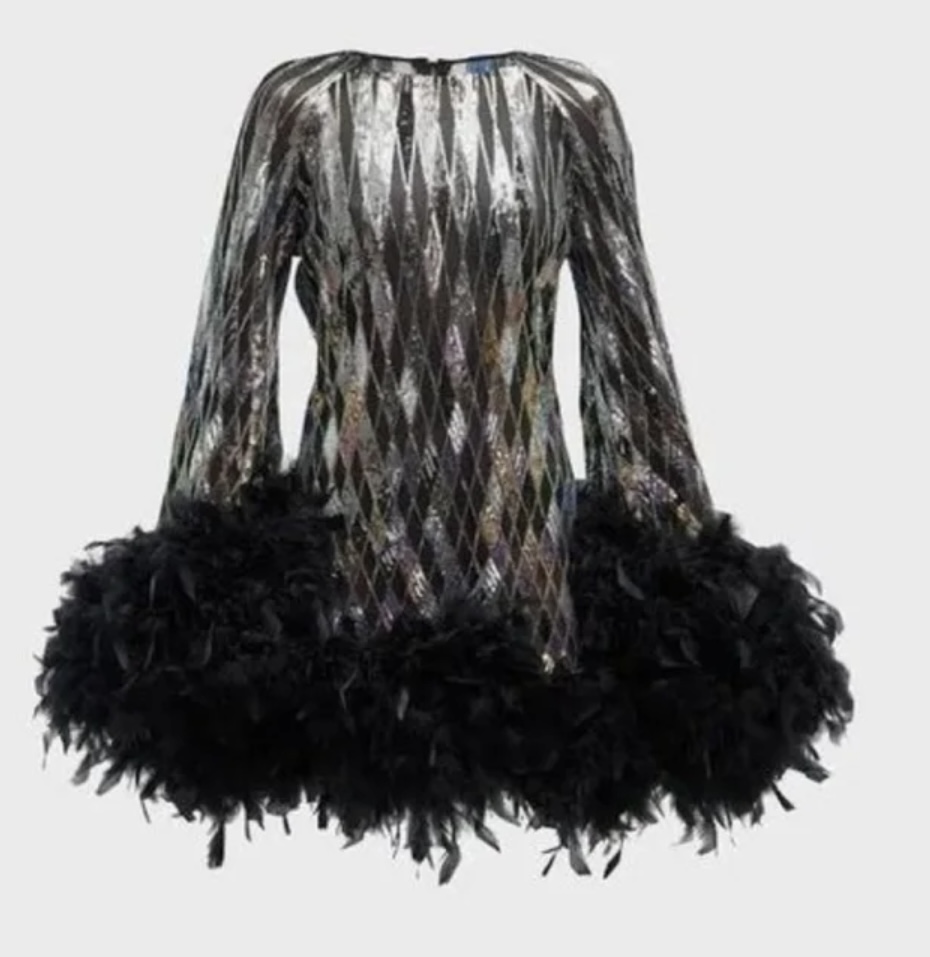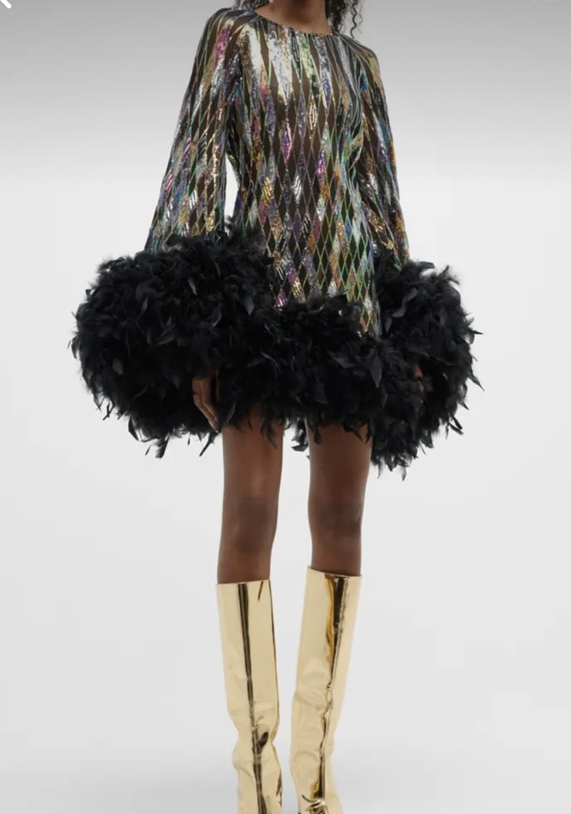 Bronx & Banco Farah Feather-Trim Sequin Mini Dress [Retail $1800]