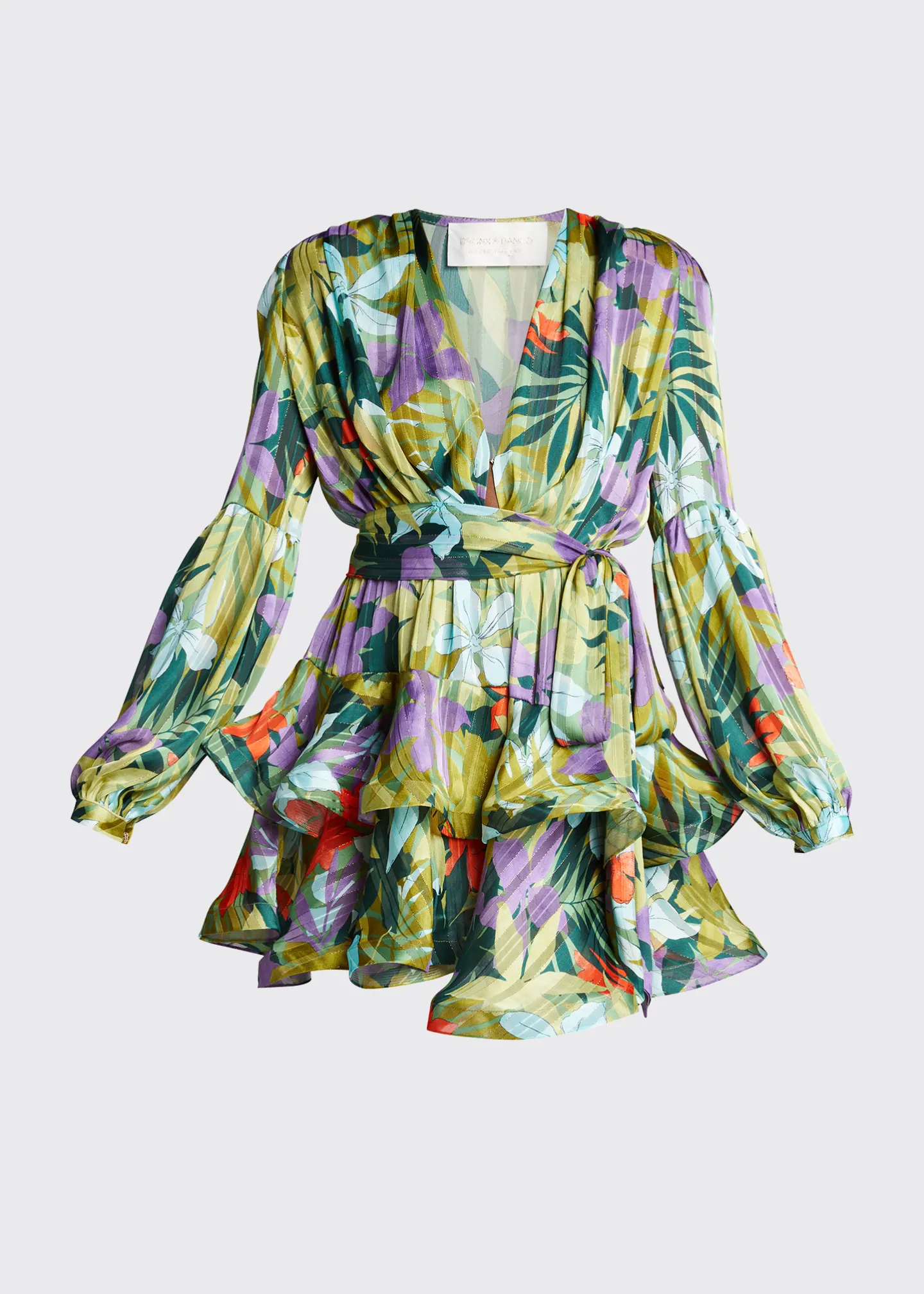 Zimmermann Tropicana Tie Sleeve Blue Floral Mini Dress [Retail $800]