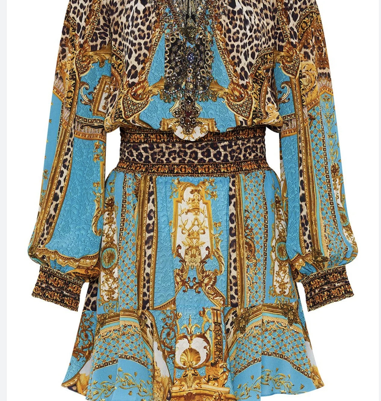 Camilla luxury designer dresses are vibrant, bohemian creations featuring intricate prints, embellishments, and flowing silhouettes, inspired by global travel and exotic cultures.