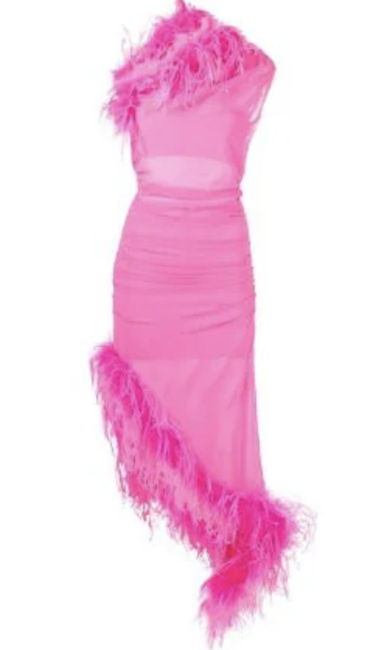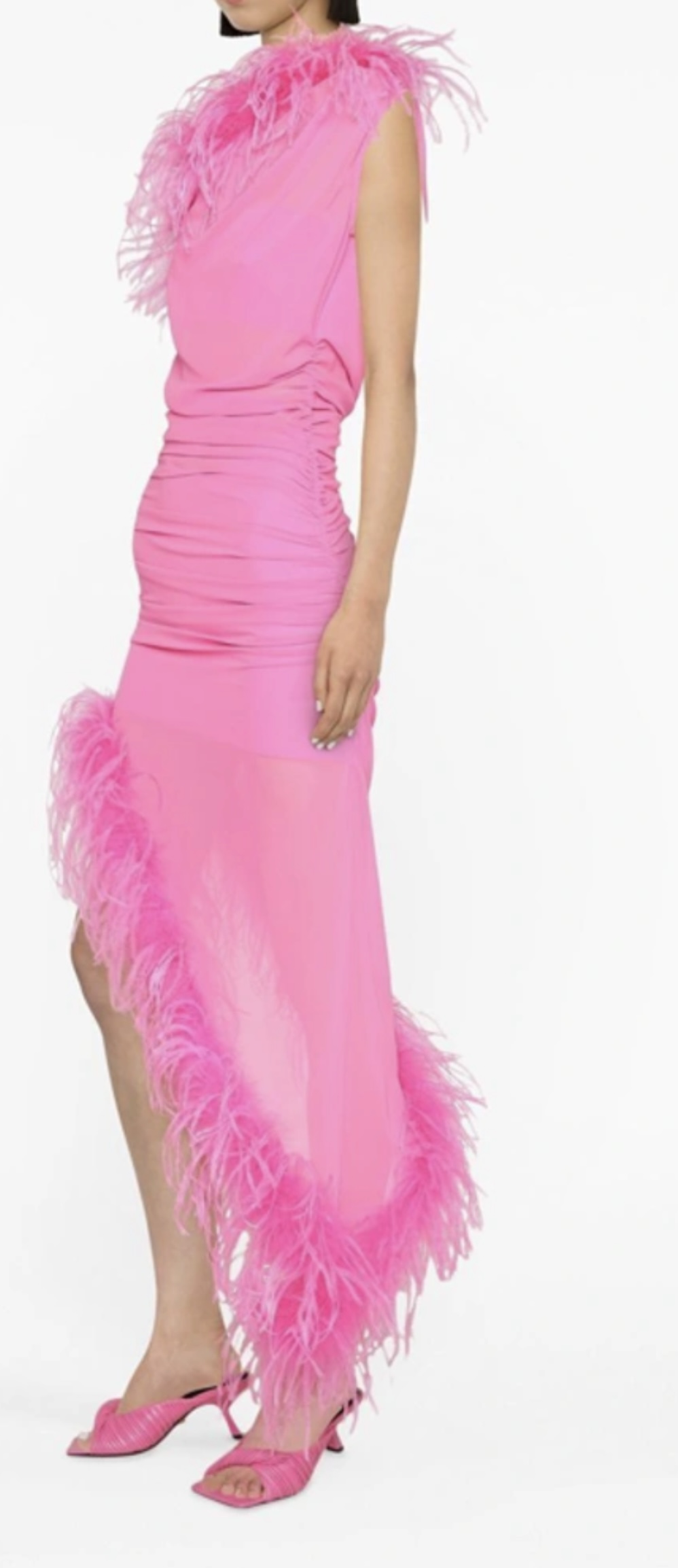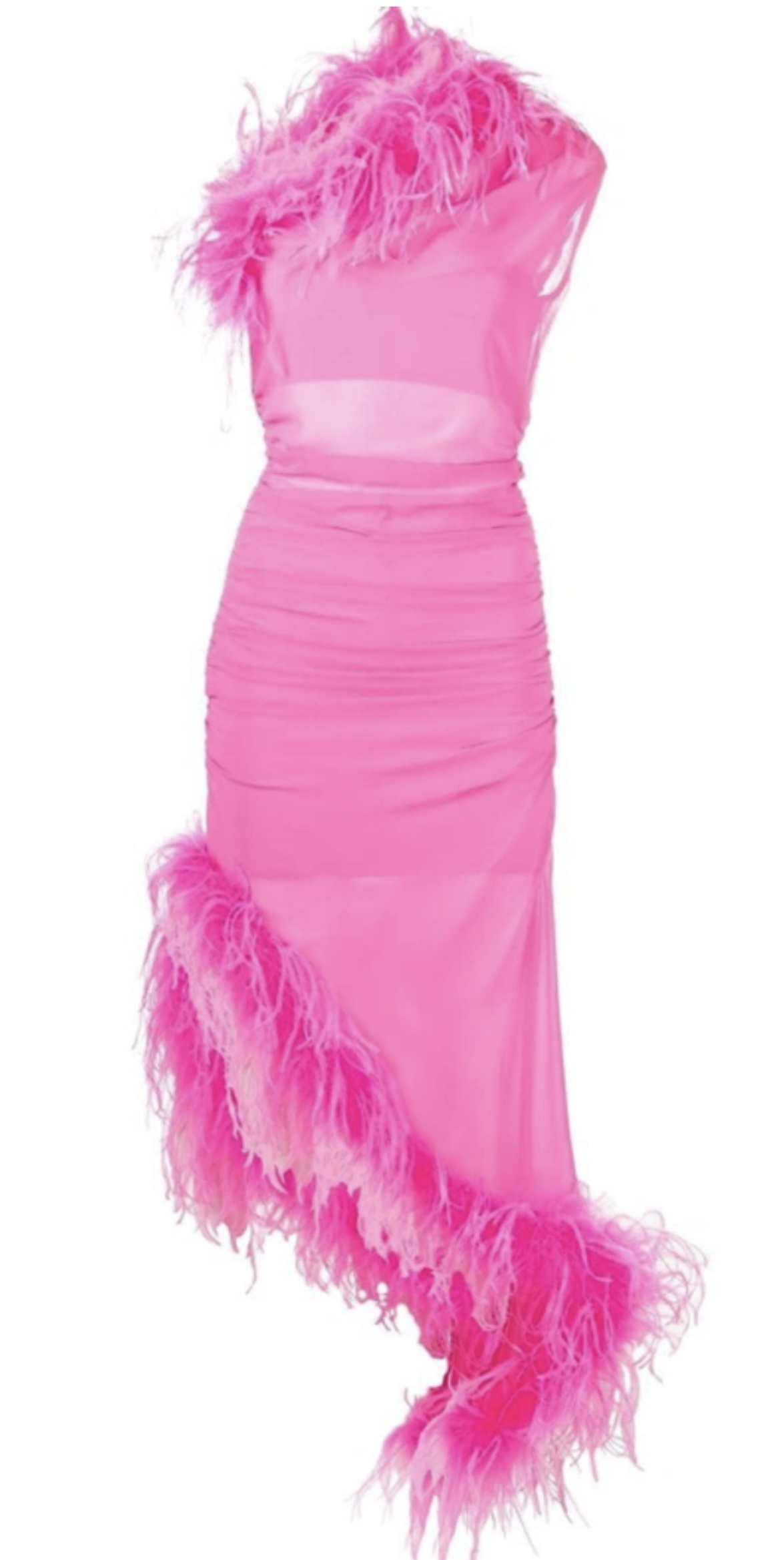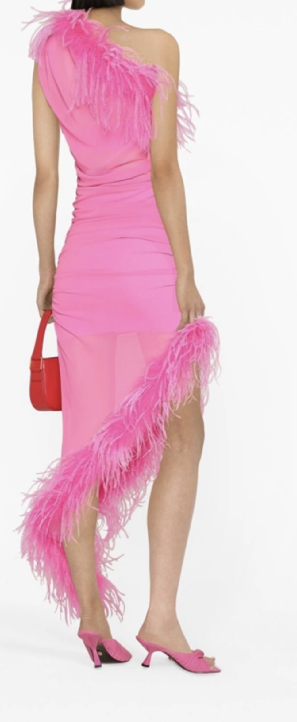 Giuseppe Di Morabito One-Shoulder Feather-Trim Dress in Pink [Retail $1453]