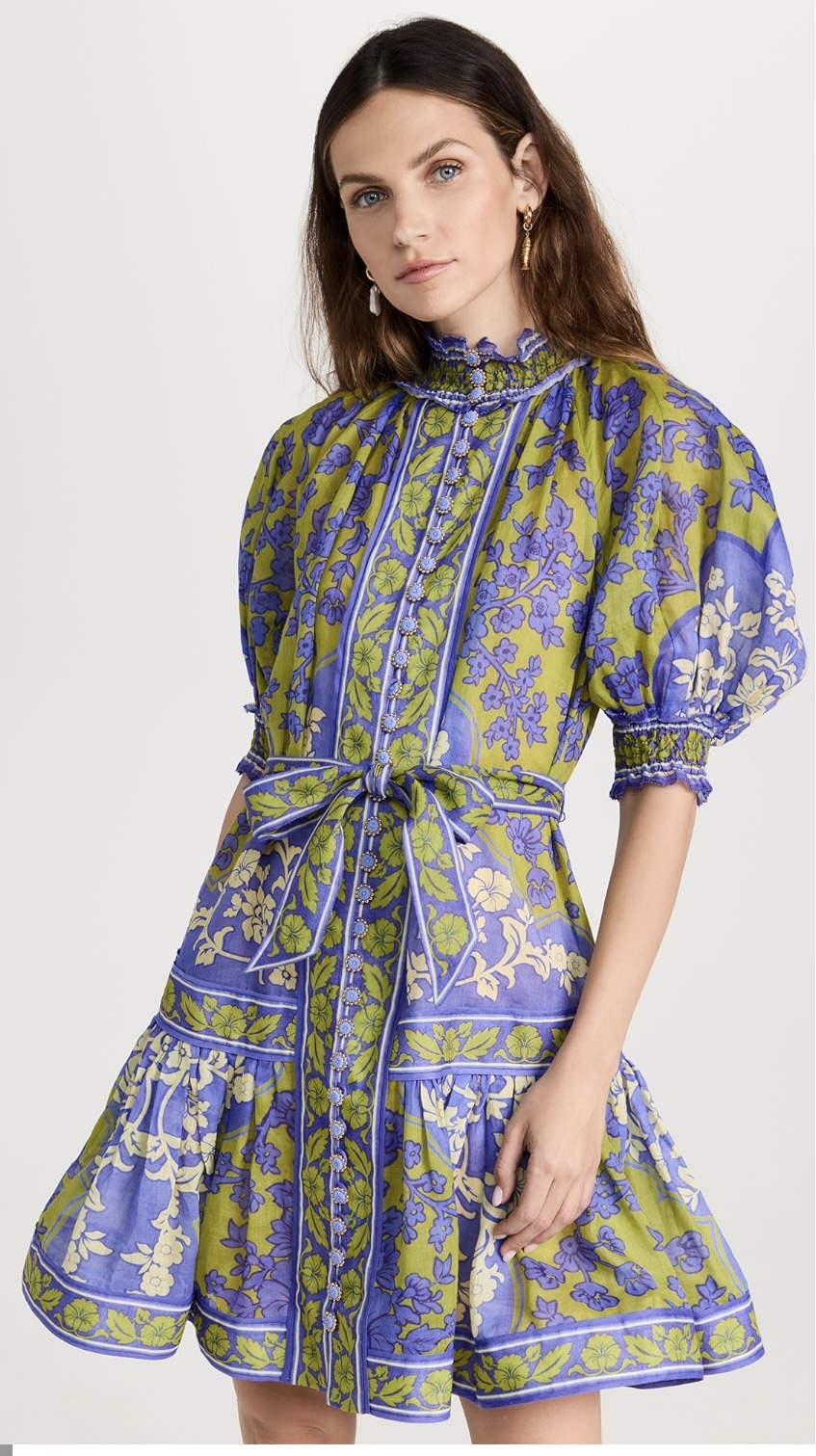 Zimmermann Raie Latern Printed Ramie Mini Dress [Retail $850]
