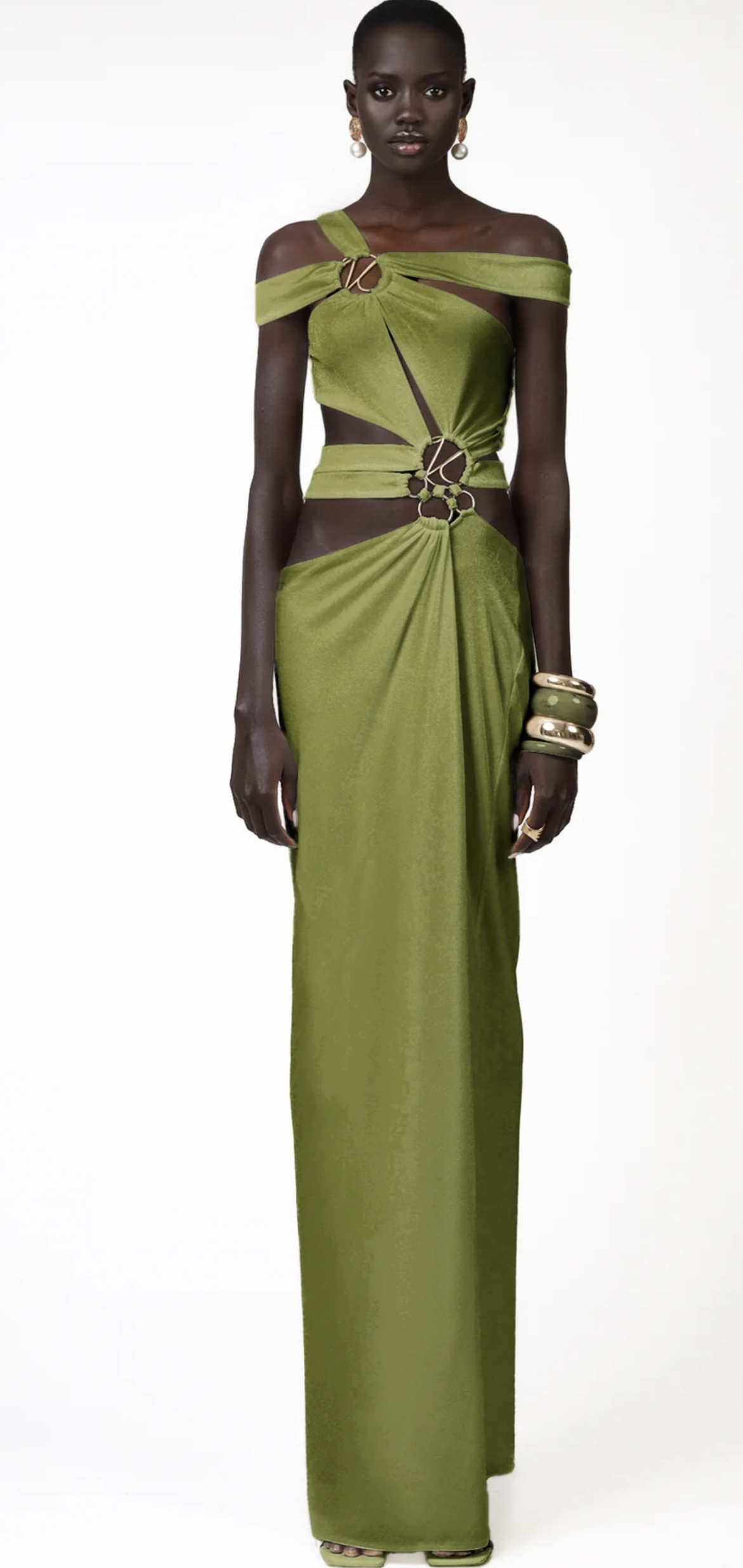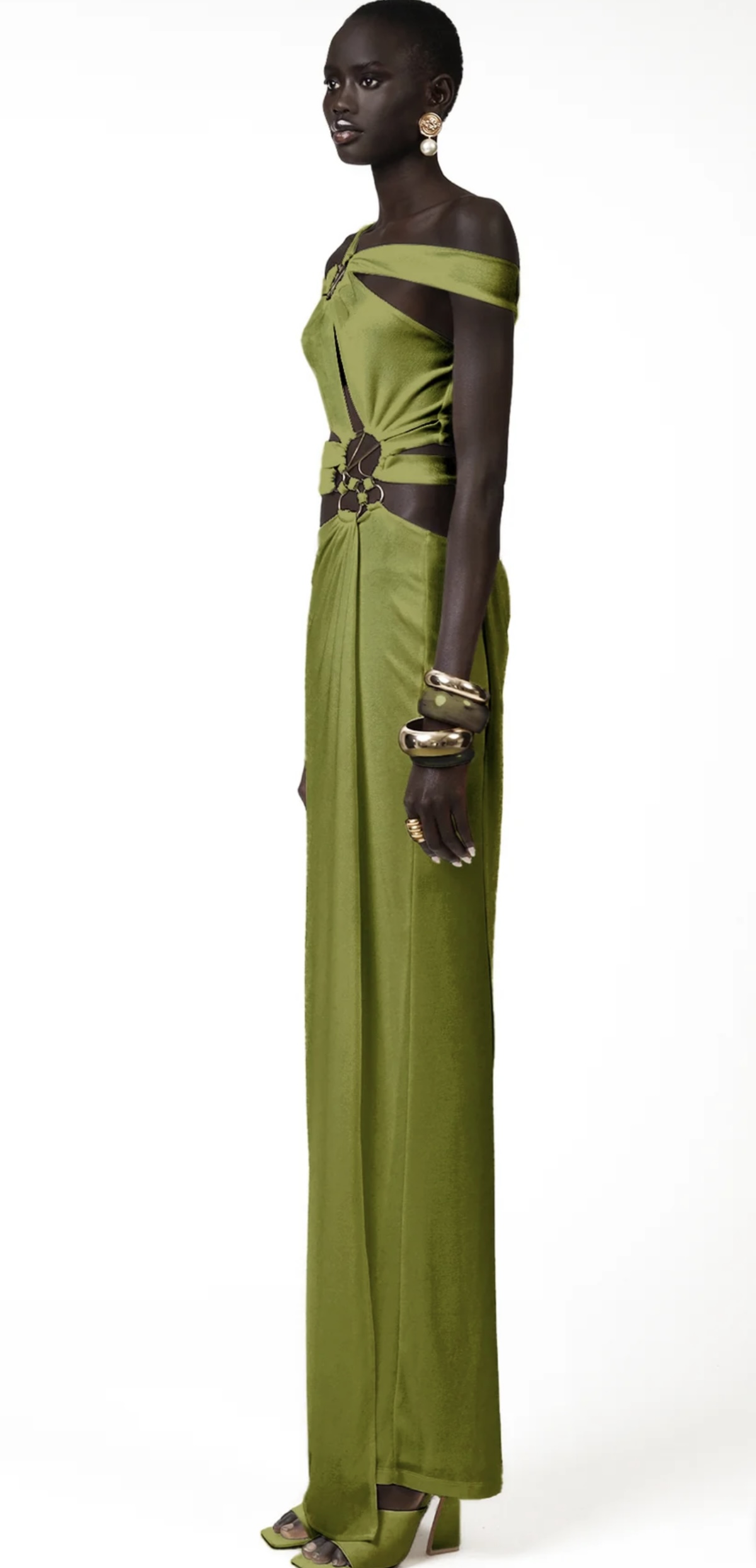 Amelia Dress – Pistachio, Embellished Gold Buckles [Retail $349.00]