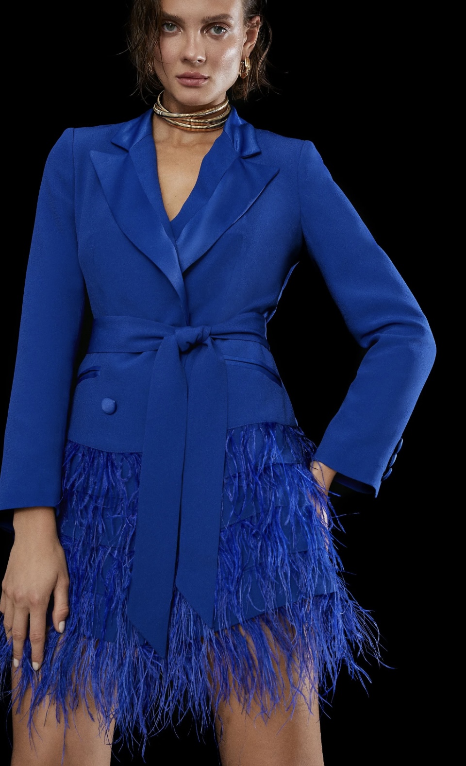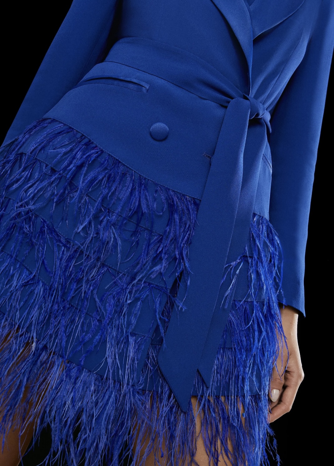 Karen Millen blue crepe feather hem double breasted tux mini dress