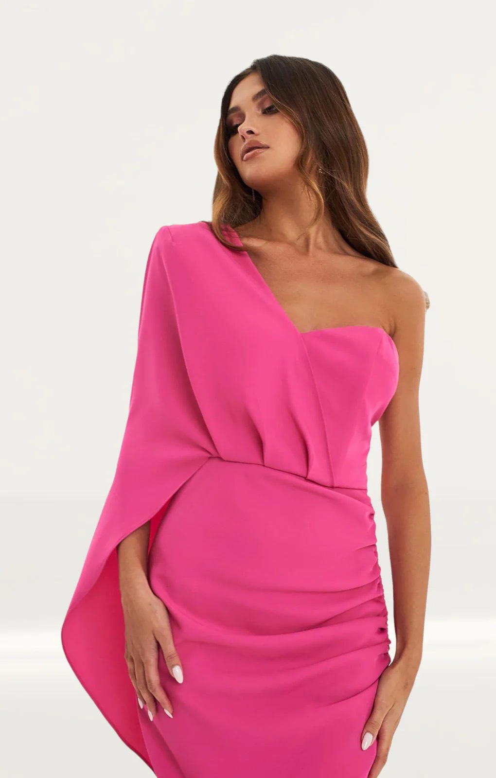 Lavish Alice Bright Pink Ruched Side Cape Midi Dress