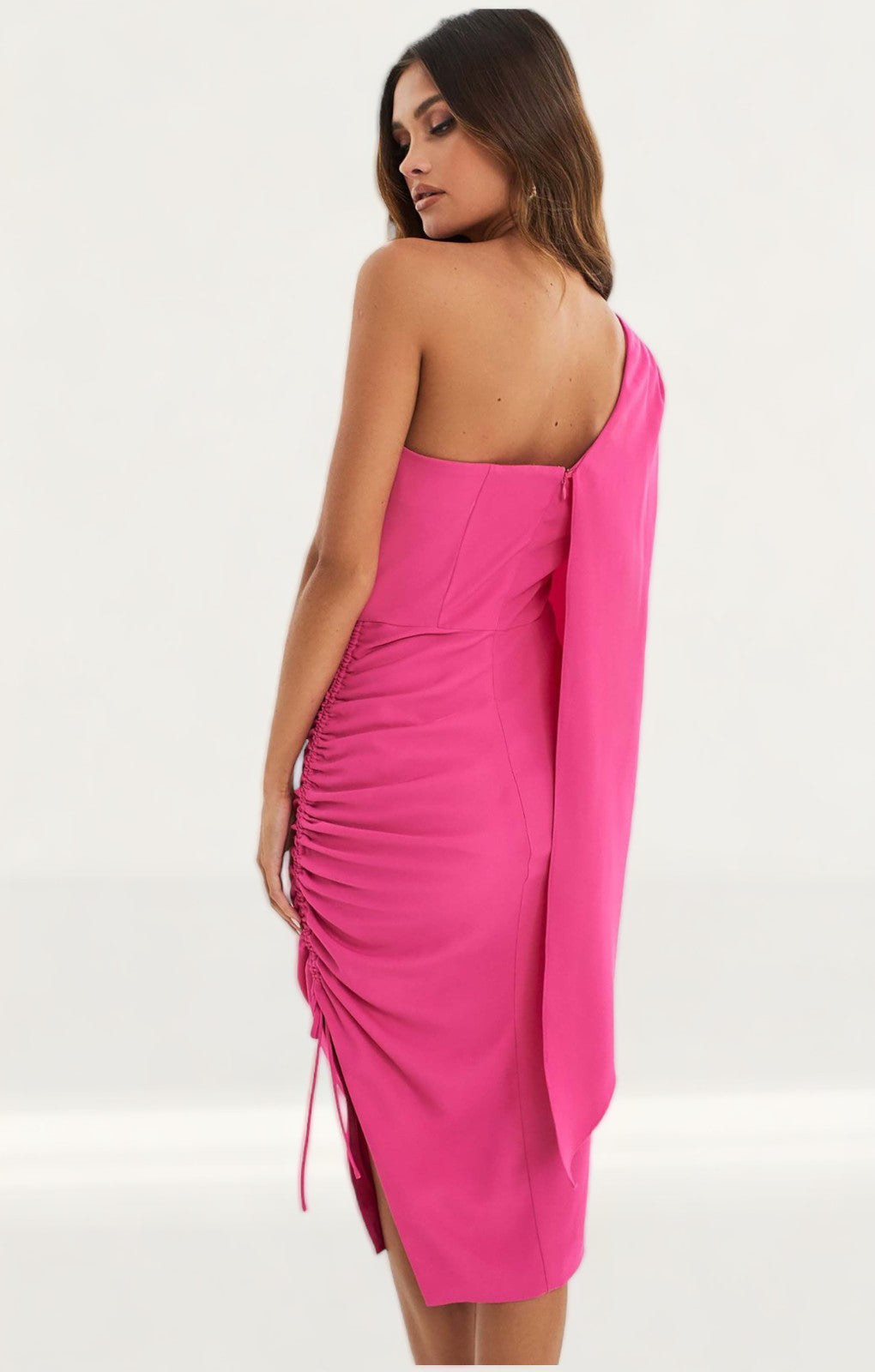 Lavish Alice Bright Pink Ruched Side Cape Midi Dress [Retail $100]