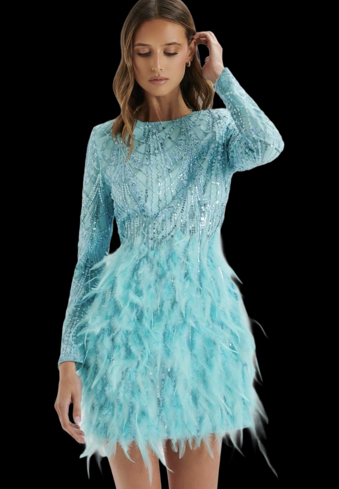 Lavish Alice feather embellished dress