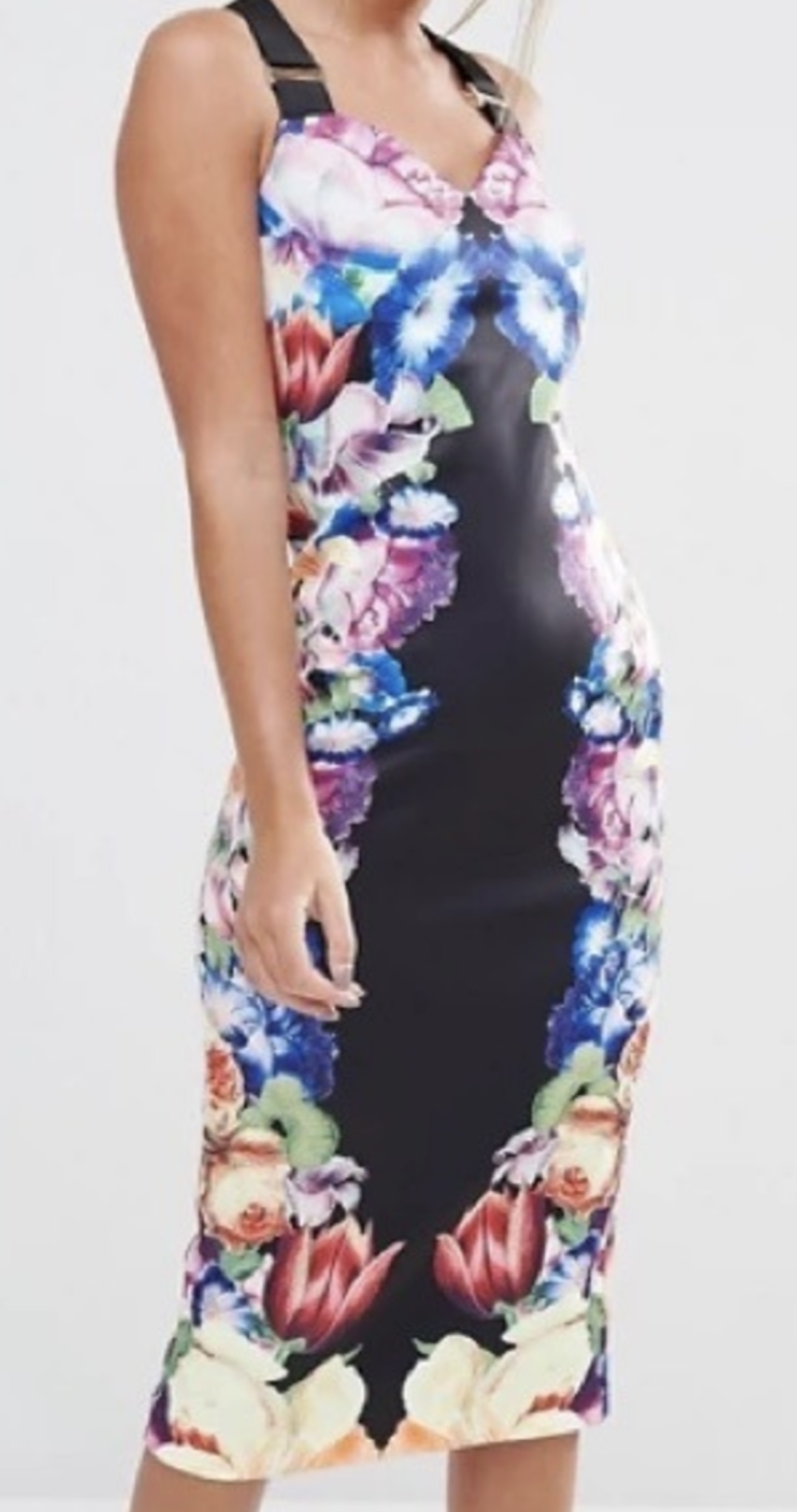 Ted Baker tapestry floral buckle strap midi dress