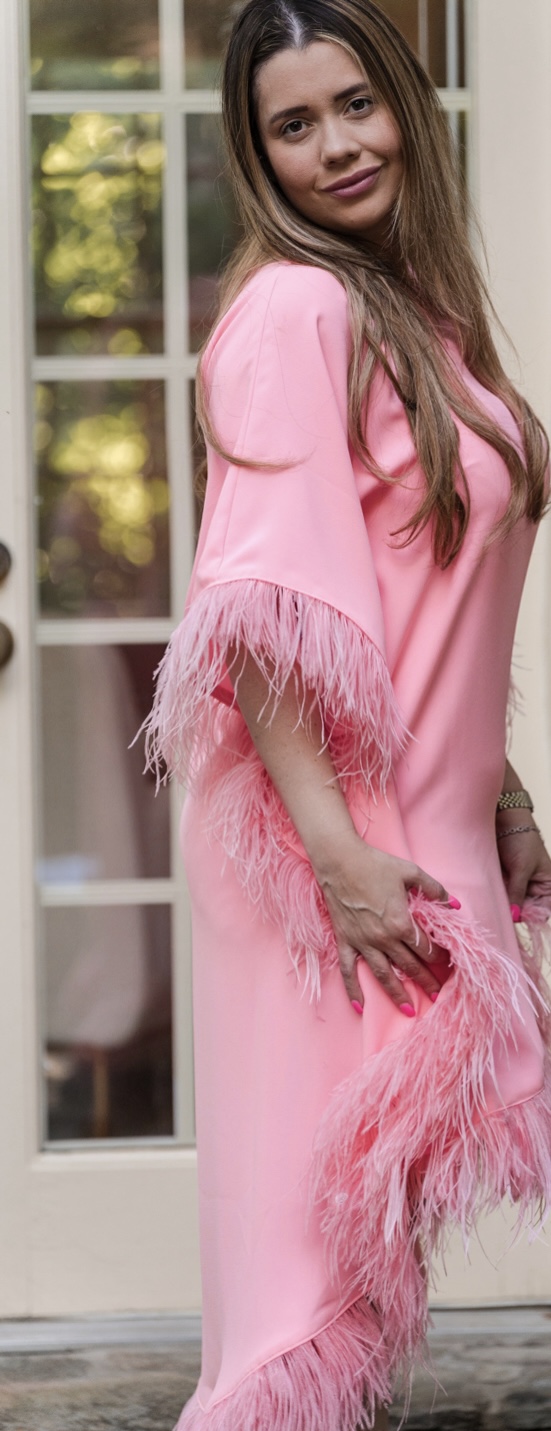Pink high low feather trim kaftan