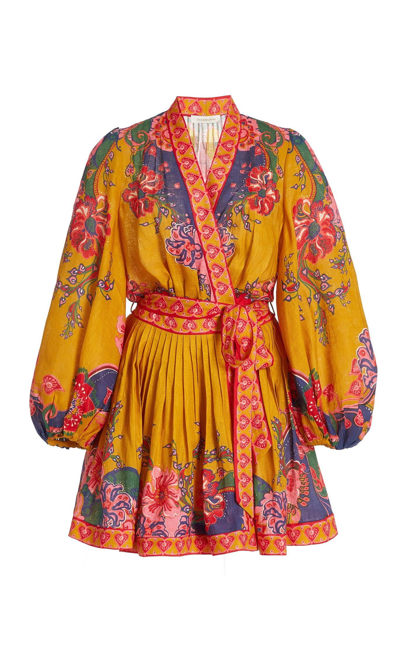 Zimmermann Gold Paisley Floral Lovestruck Wrap Mini Dress