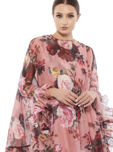 Mac Duggal Floral Print High Neck Ruffle Hem Cape Mini Dress [Retail $398]